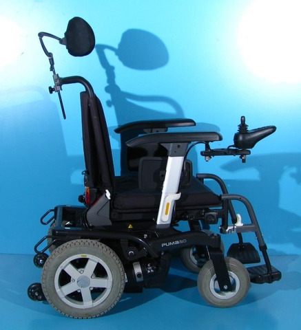 Scaun cu rotile electric second hand cu comanda pe joystick destinat persoanelor cu handicap si persoanelor cu deficiente locomotorii.